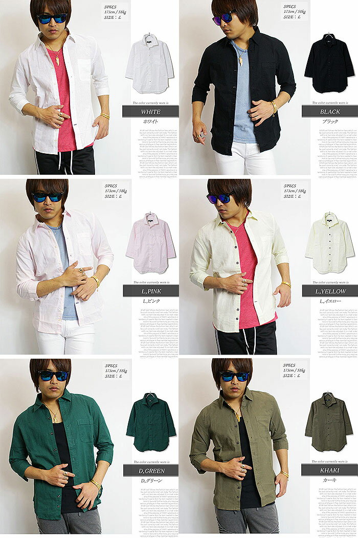 送料無料 綿麻シャツ メンズ 7分袖 長袖 ストレッチ 春 夏 綿麻 リネン 全9色 M L LL MOSTSHOP ゆうパケ セール