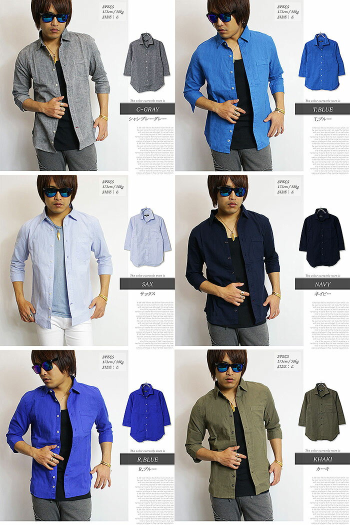 クーポン利用で値下SALE★ シャツ メンズ / リネンコットン 七分袖 シャツ 《 メンズ 七分袖シャツ 綿麻シャツ 7分袖シャツ リネンシャツ シャンブレーシャツ 無地シャツ 白シャツ ホワイト カジュアルシャツ トップス お兄系